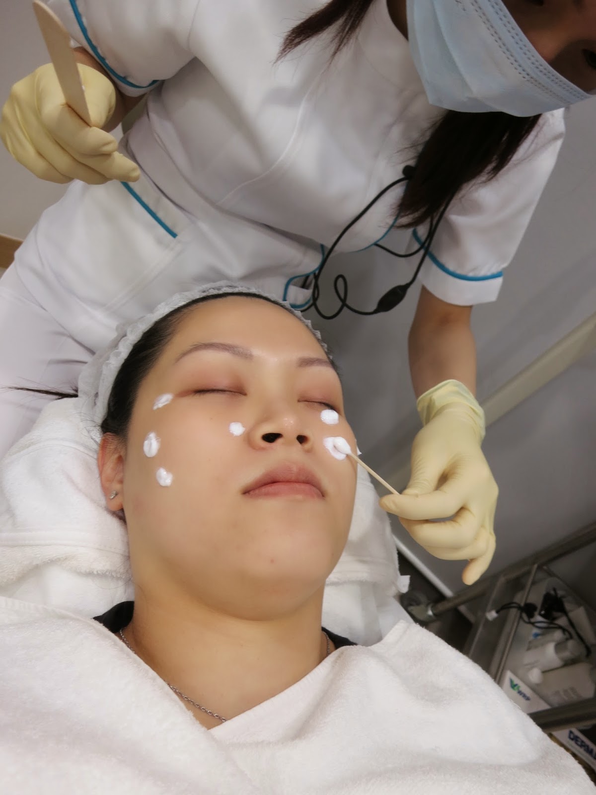 畫好圈,就在有疣的位置塗上麻醉膏,以減輕治療時的勺熱感。在等待麻醉生效時,我已不知不覺入睡,治療師我抹去麻醉膏,貼上遮眼膠布後,陳醫生就來為我做CO2 L ASER二氧化碳激光除疣。